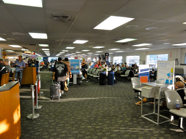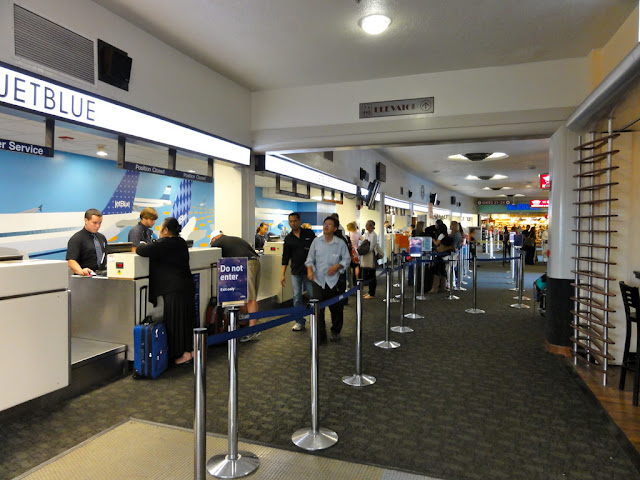 W końcu w delikatnym stresie dotarłem do Long Beach, zostawiłem Zipcara na parkingu California State University (swoją drogą fajnie było zaszczuć się w prawdziwy amerykański kampus uczelniany, zupełnie jak na filmach) i wróciłem na lotnisko. Terminal pasażerski LGB można określić słowami: zacofany, prowincjonalny, tymczasowy, ale jednak ma wszystko – miniaturowy taras widokowy, muzeum, barek. A samo lotnisko dość bogatą historię, o czym można poczytać na ścianach.