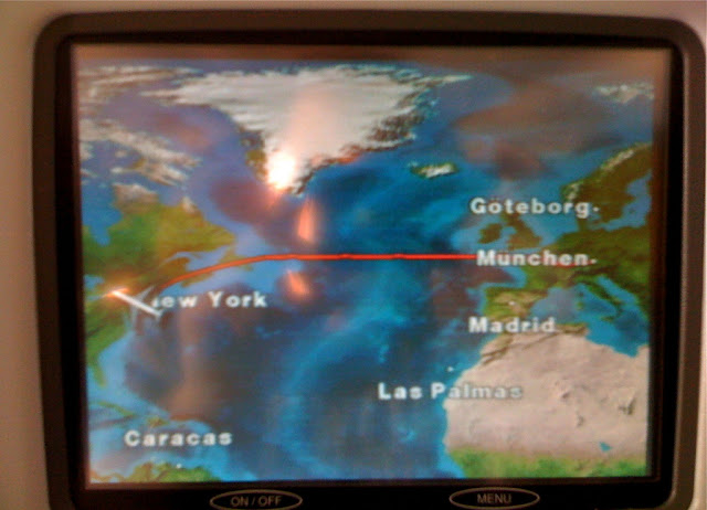 Ze względu na silny jetstream lecieliśmy po południowej trasie, początkowo mijając Zurich i Paryż, a następnie wlatując nad Atlantyk w okolicach Brestu. Trochę poczytałem, chwilę się zdrzemnąłem, coś tam zjadłem i 10 minut przed czasem, czyli o 14:50, wylądowaliśmy w Nowym Jorku. Godzina stania w kolejce do Immigration, pieczątka i I-94 wbite w paszport i wreszcie mogę wyjść na powietrze, gdzie czekał już na mnie Zbyszek.
