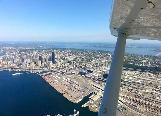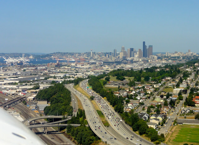 No dobrze, ale wróćmy do codziennych zajęć. Końcówka sierpnia była bogata w cross country. Carson idzie „starym” syllabusem, w którym są dwa loty xc w szkoleniu do IR. Na krótkie wybraliśmy się do Astorii i nie ma tu co dużo pisać. Na tzw. „long IFR xc” polecieliśmy do Seattle i Everett, czyli Boeing Field i Paine Field. Co prawda wolałbym dla odmiany inną trasę (gdzieś przez góry), ale Seattle też nie jest złe.